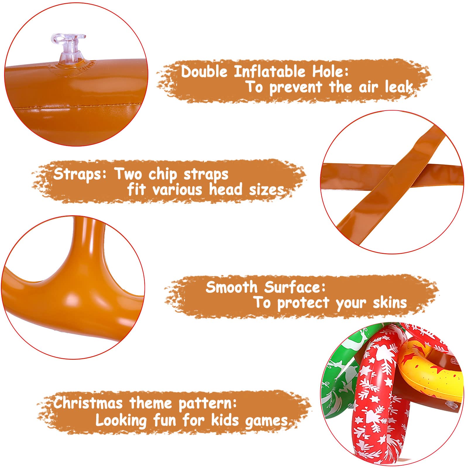 Max Fun 4 Pack Inflatable Reindeer Antler Ring Toss Games Indoor Outdoor Christmas Party Games Party Favors, 4 Anlters & 24Rings
