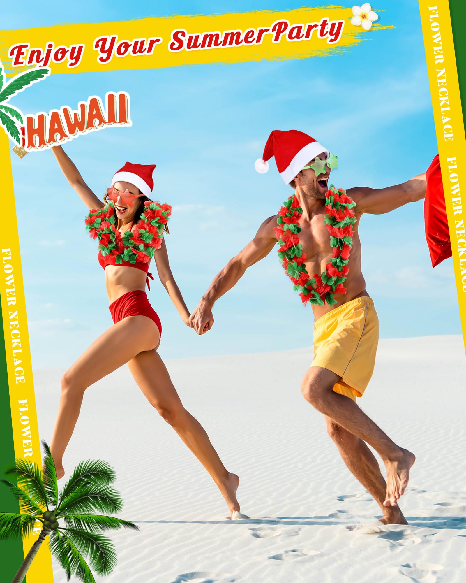 Mepase 18 Pcs Christmas in July Party Supplies Christmas Santa Hats Hawaiian Flower Leis Star Glasses for Adults Summer Party
