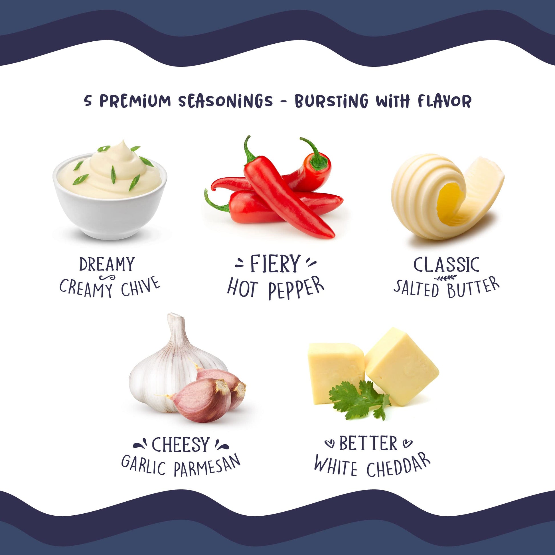 - 5 DELICIOUS POPCORN FLAVORS: Make movie magic with 5 mouth-watering, savory popcorn seasonings: Classic Salted Butter, Cheesy Garlic Parmesan, Better White Cheddar, Creamy Dreamy Chive, and Fiery Hot Pepper. Our Movie Night Popcorn Holiday Gift Set lets you whip up an exciting cinematic snack in no time.