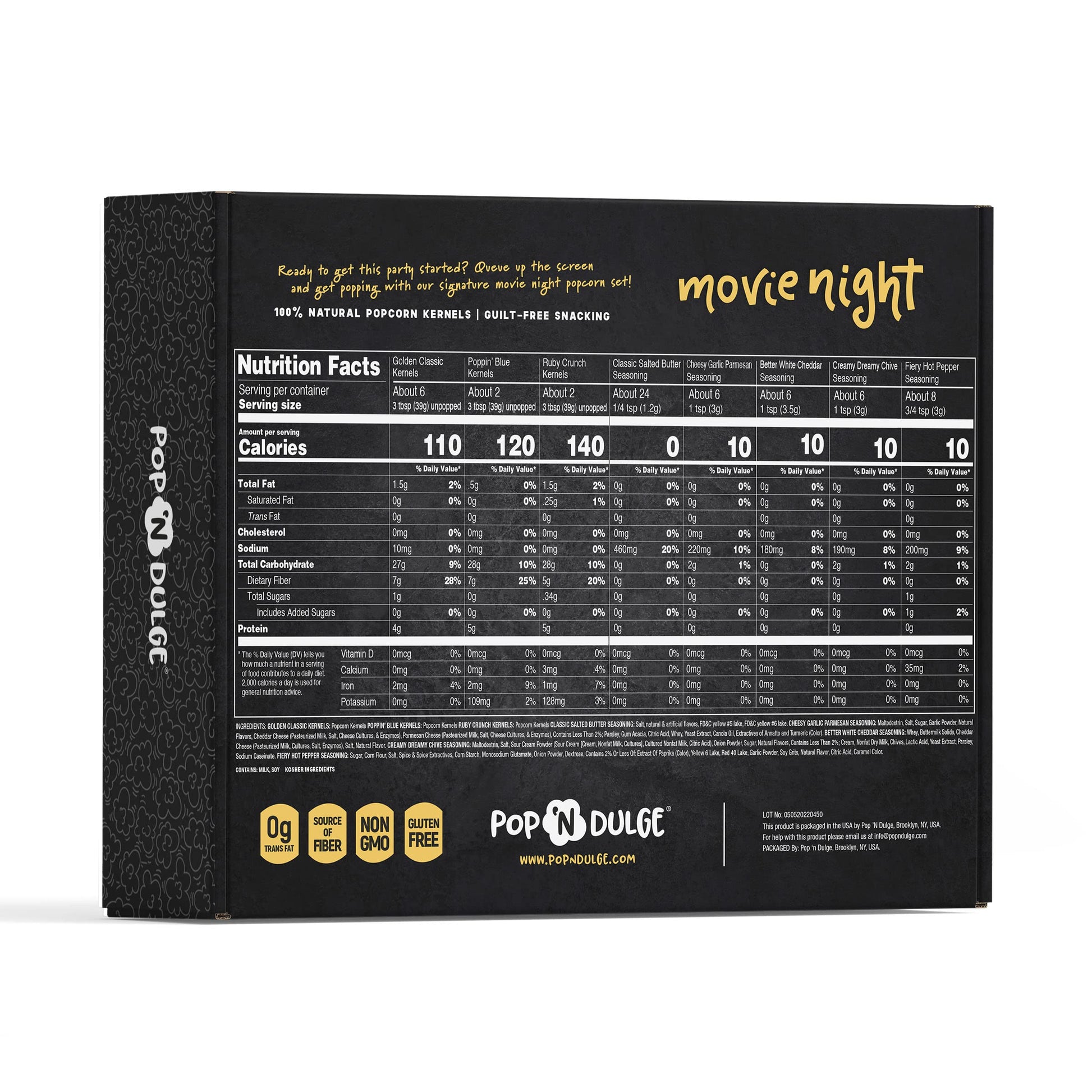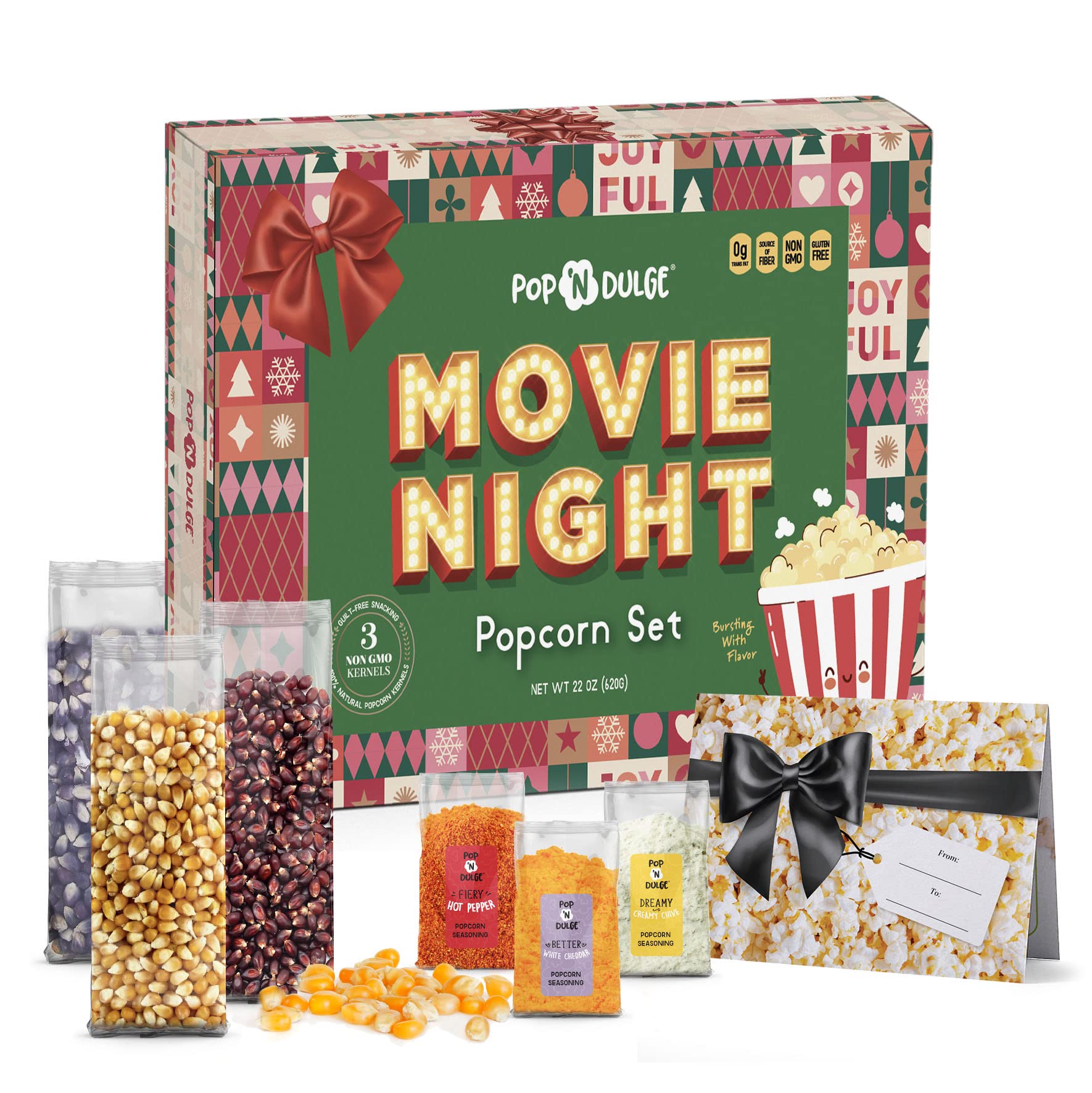 - A GREAT GIFT: Family Christmas gifts, couples Christmas gifts ideas, Christmas gifts for parents — everyone has a reason to love our Pop ‘n Dulge Movie Night Popcorn Holiday Gift Set. Also a wonderful choice for date night, family gifts, foodie gifts, and birthday gift ideas!