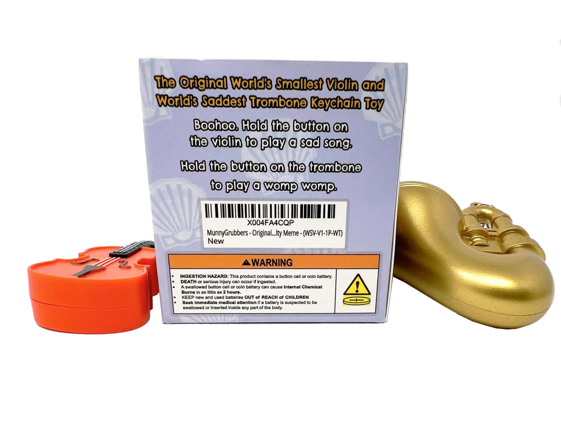MunnyGrubbers - Original World's Smallest Violin & World's Saddest Trombone Toy Keychain with Playable Sad Sound - Sad Trombone - Mini Tiny Violin Keychain with Sound - Funny Meme - (WSV-V1-1P-WT)