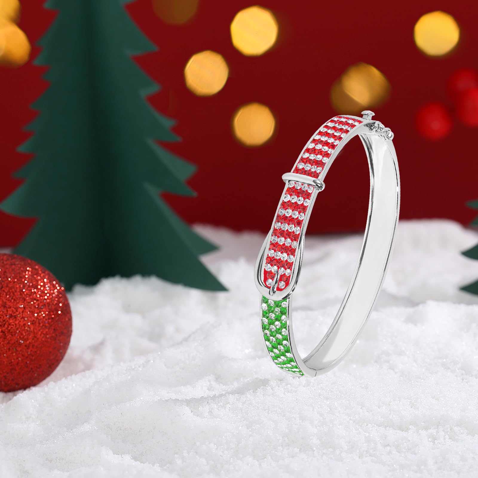 MUYUU Christmas Bangle Bracelet, Silver Plated Red and Green Bracelet, Sparkly Crystal Bracelet For Women Fashion Jewelry