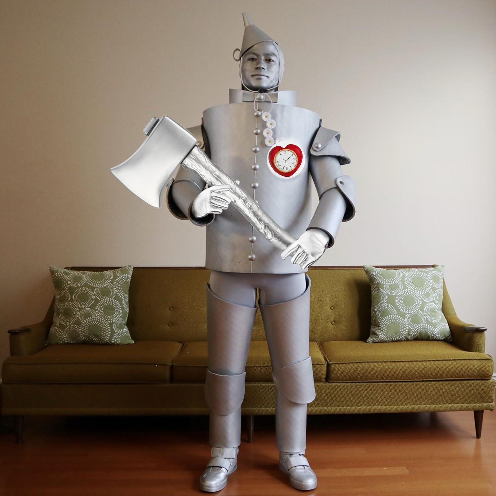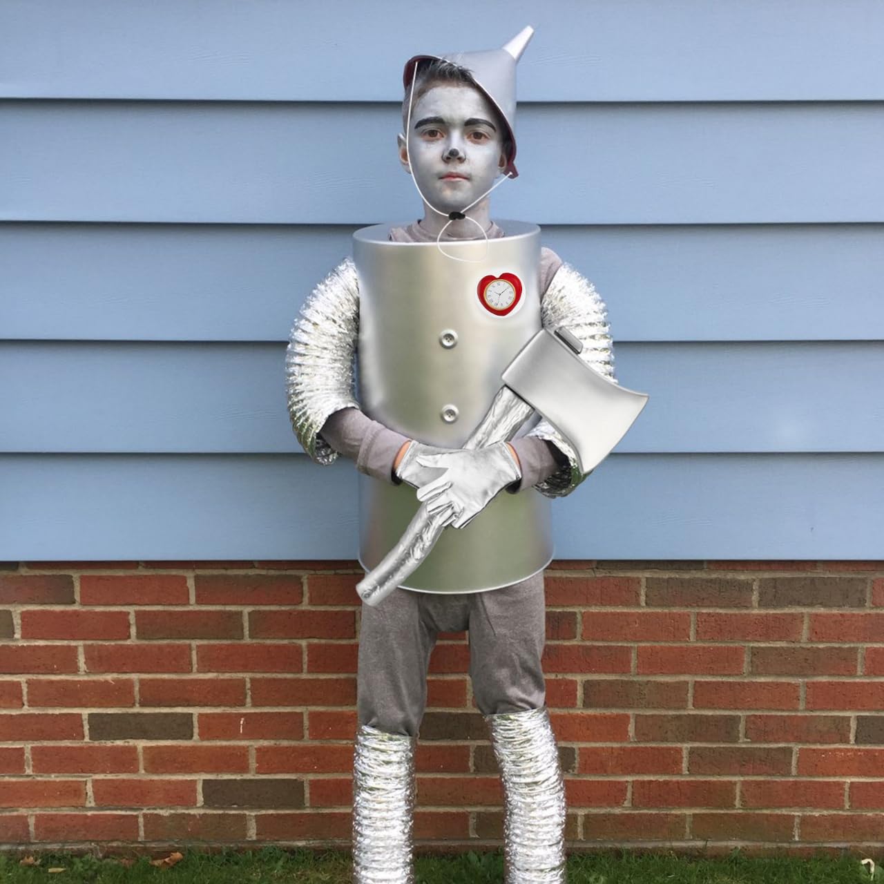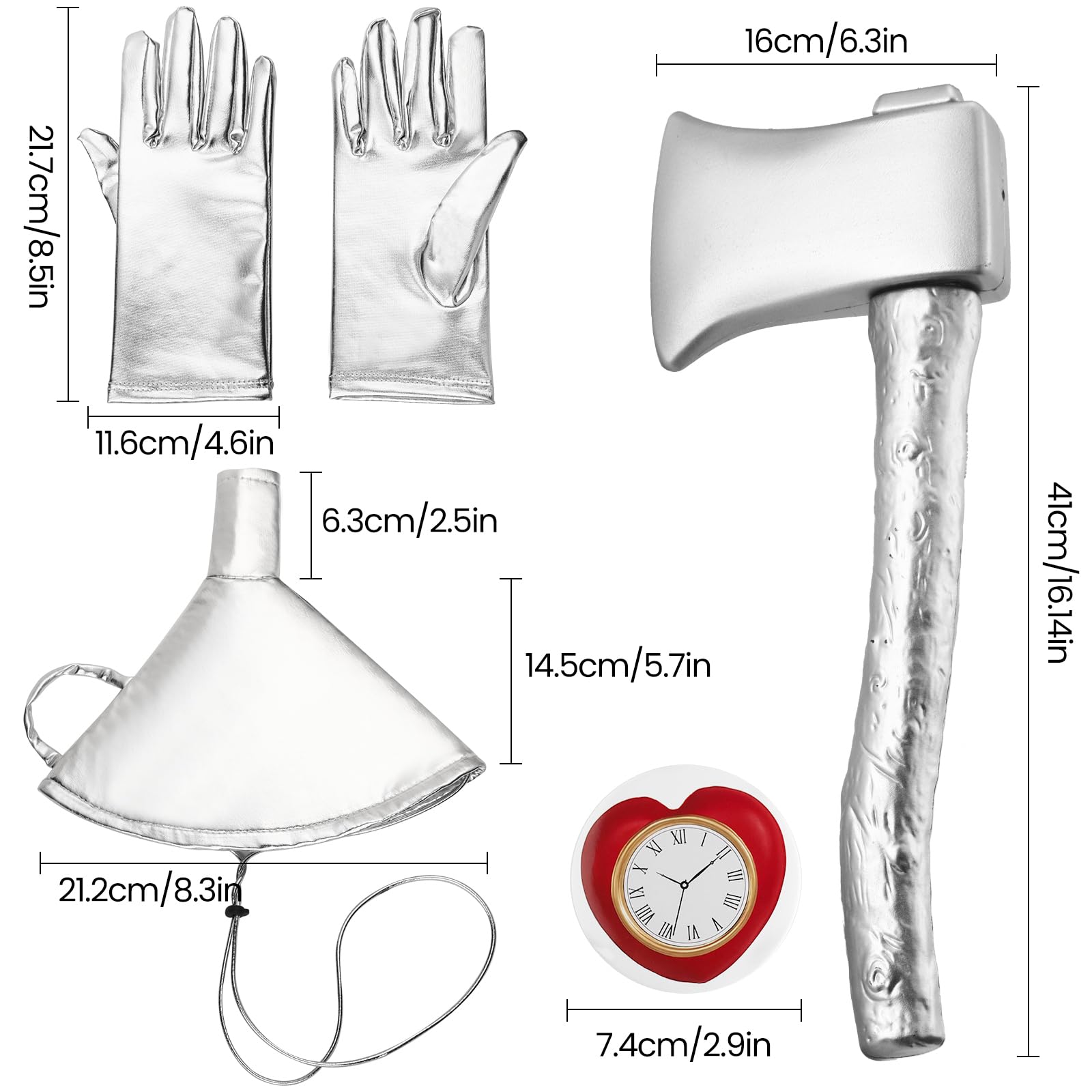 - Set includes: a silver funnel cap + a retro silver axe + metal-textured gloves + clock heart badge, perfectly replicating the classic movie character images