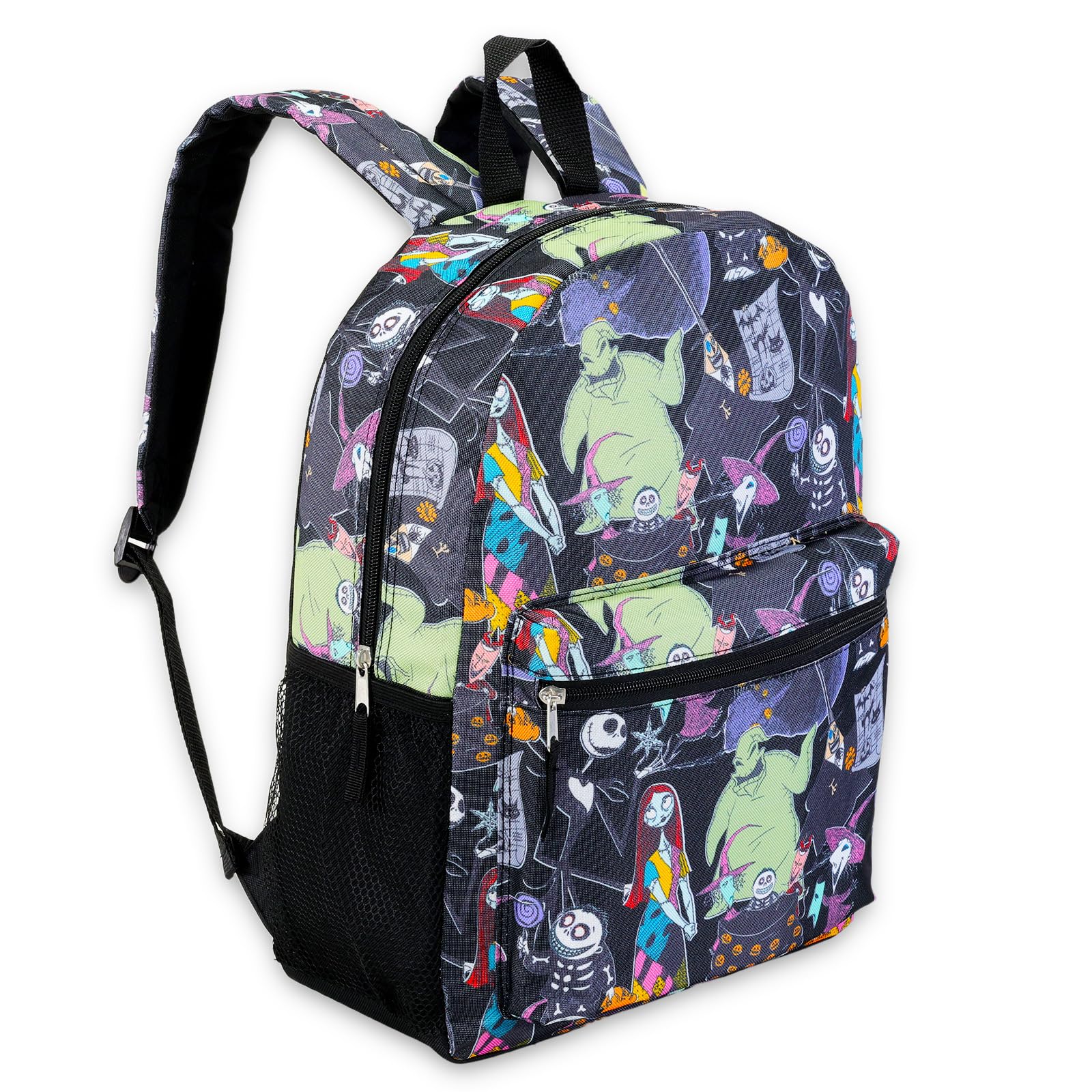 - This Nightmare Before Christmas backpack set includes a 16” backpack with adjustable shoulder straps, zip closure compartment, and top loop for hanging featuring colorful artwork of Jack Skellington, Zero, Sally, Oogie Boogie, and more.