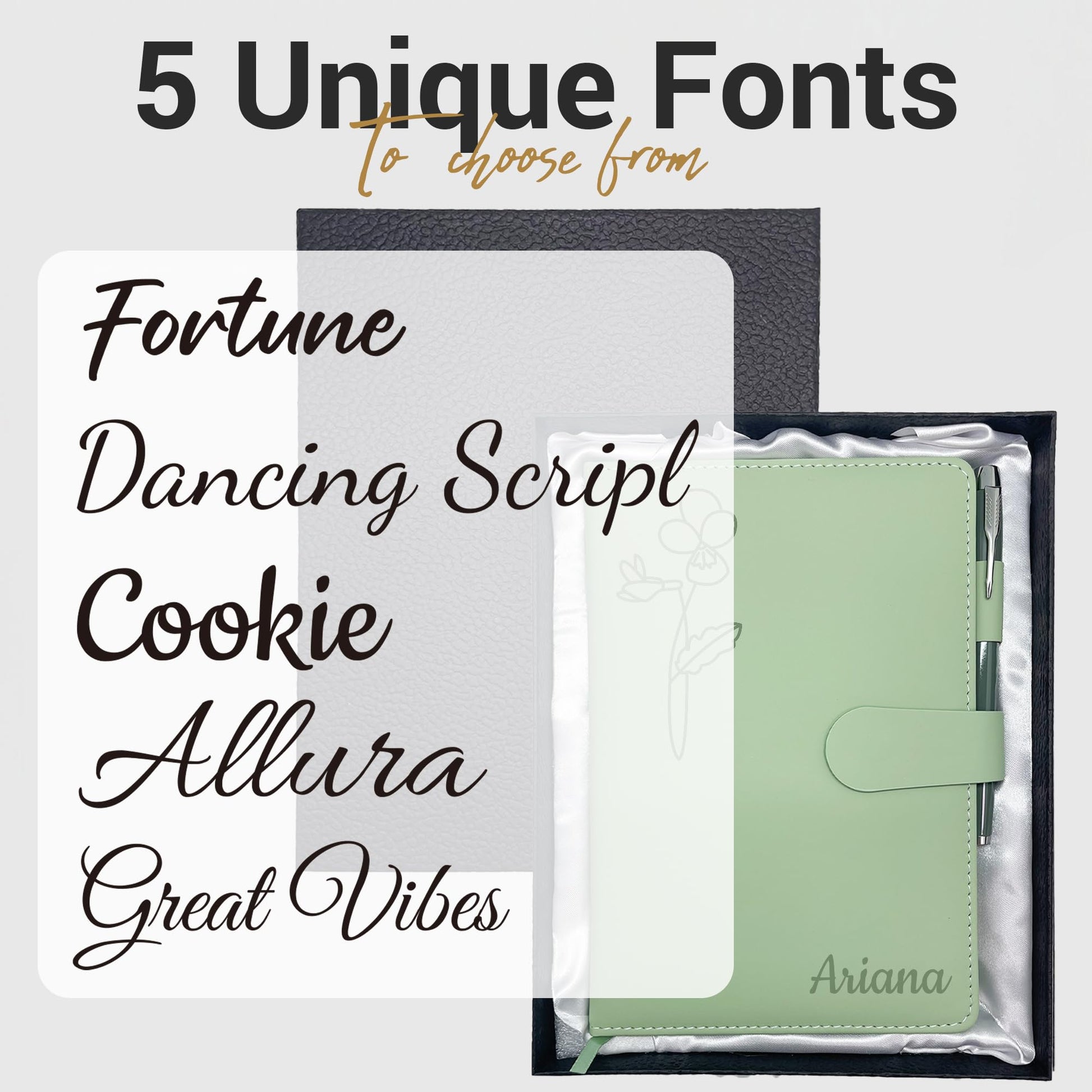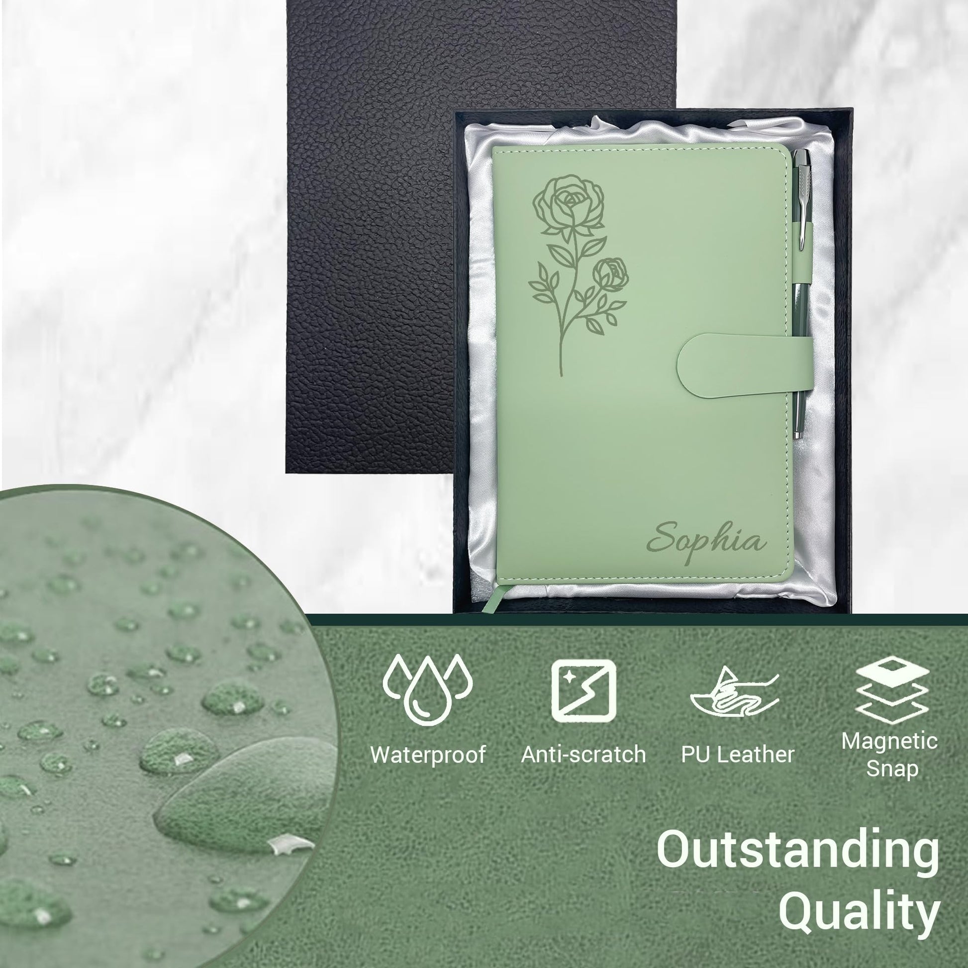 - Custom Birth Flower & Name Engraving - Make it uniquely hers with a laser-engraved birth month flower and name – perfect for a flower notebook or monogram notebook that reflects her personality. This personalized touch turns a simple journal into a heartfelt keepsake, ideal for birthday gifts or milestone moments.