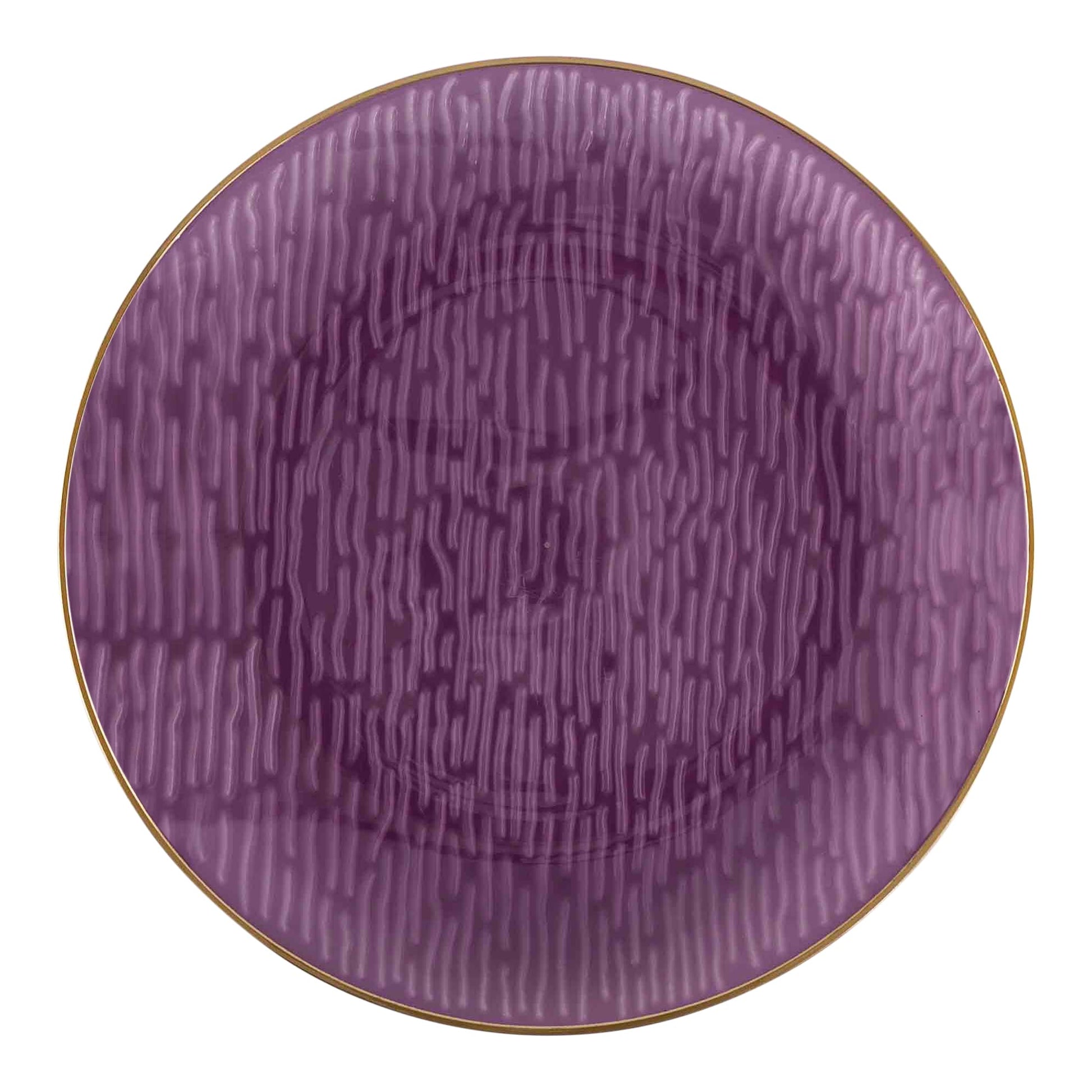 - 48 Pack Purple with gold rim disposable dishes. Each combo set includes 24 7 inch and 24 10 inch plastic dinner plates.