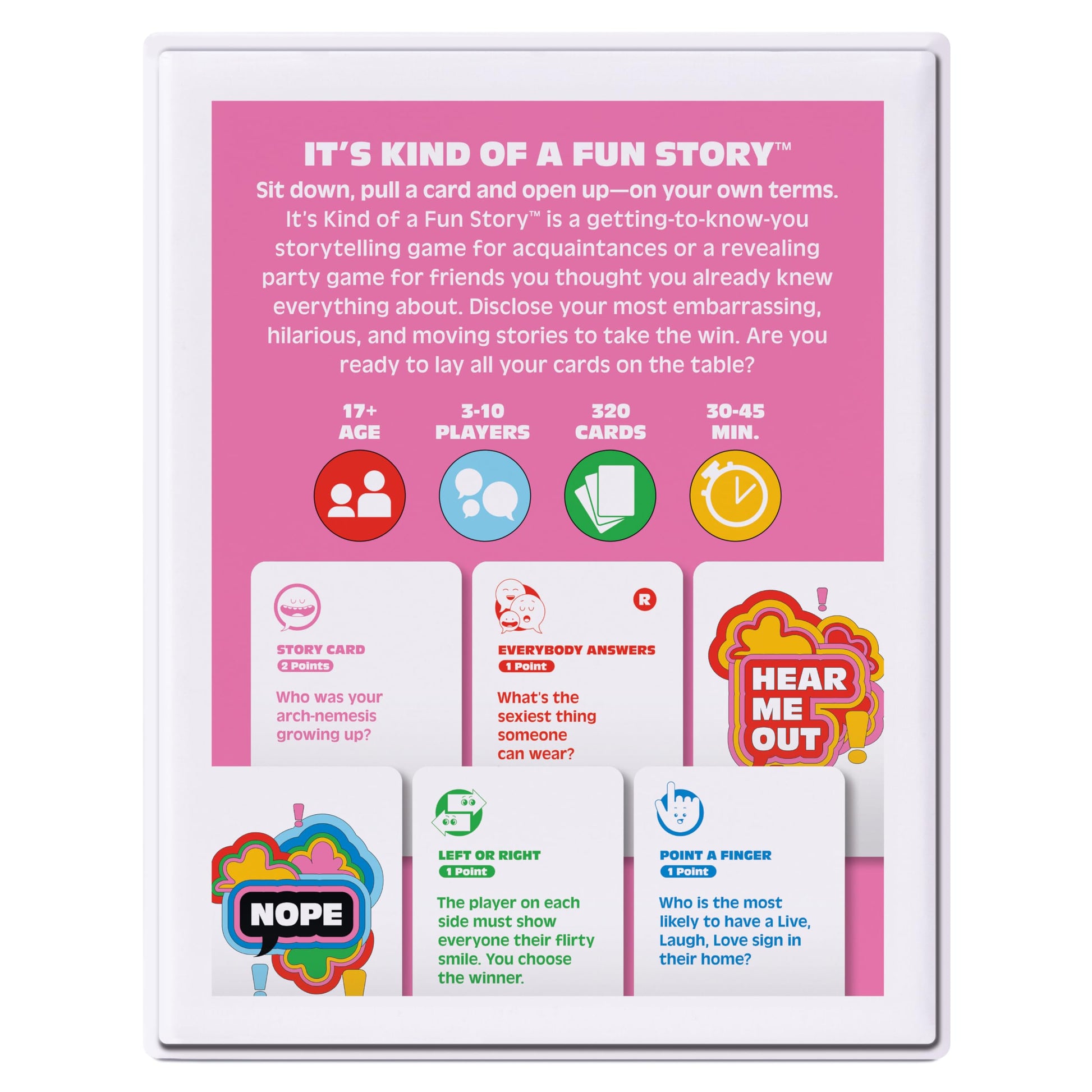 - A WHOLE NEW WAY TO PARTY: Skip the small talk and let the jaw-dropping moments unfold with a party game like no other. It’s Kind of a Fun Story is the hit adult party game where the story of your life earns you points! Perfect for game nights, happy hours, family gatherings, girls/gurls trips, and long car rides when you need your dad to stop belting out every song on the radio.