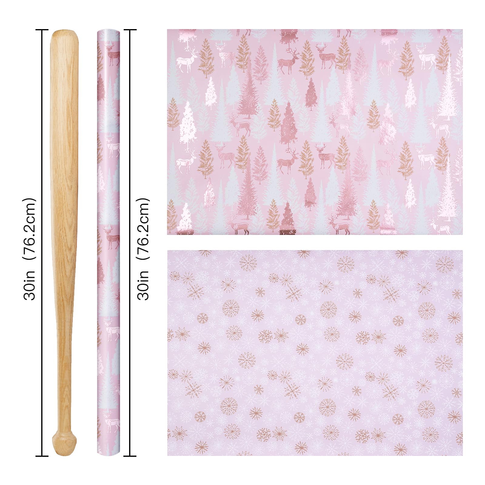 - Perfect for Holiday Gifts: Ideal for wrapping Christmas gifts, holiday presents and special occasion gifts, this wrapping paper is especially perfect for girls. The charming reindeer and tree design, combined with the soft pink snowflakes, brings warmth and elegance to your gifts