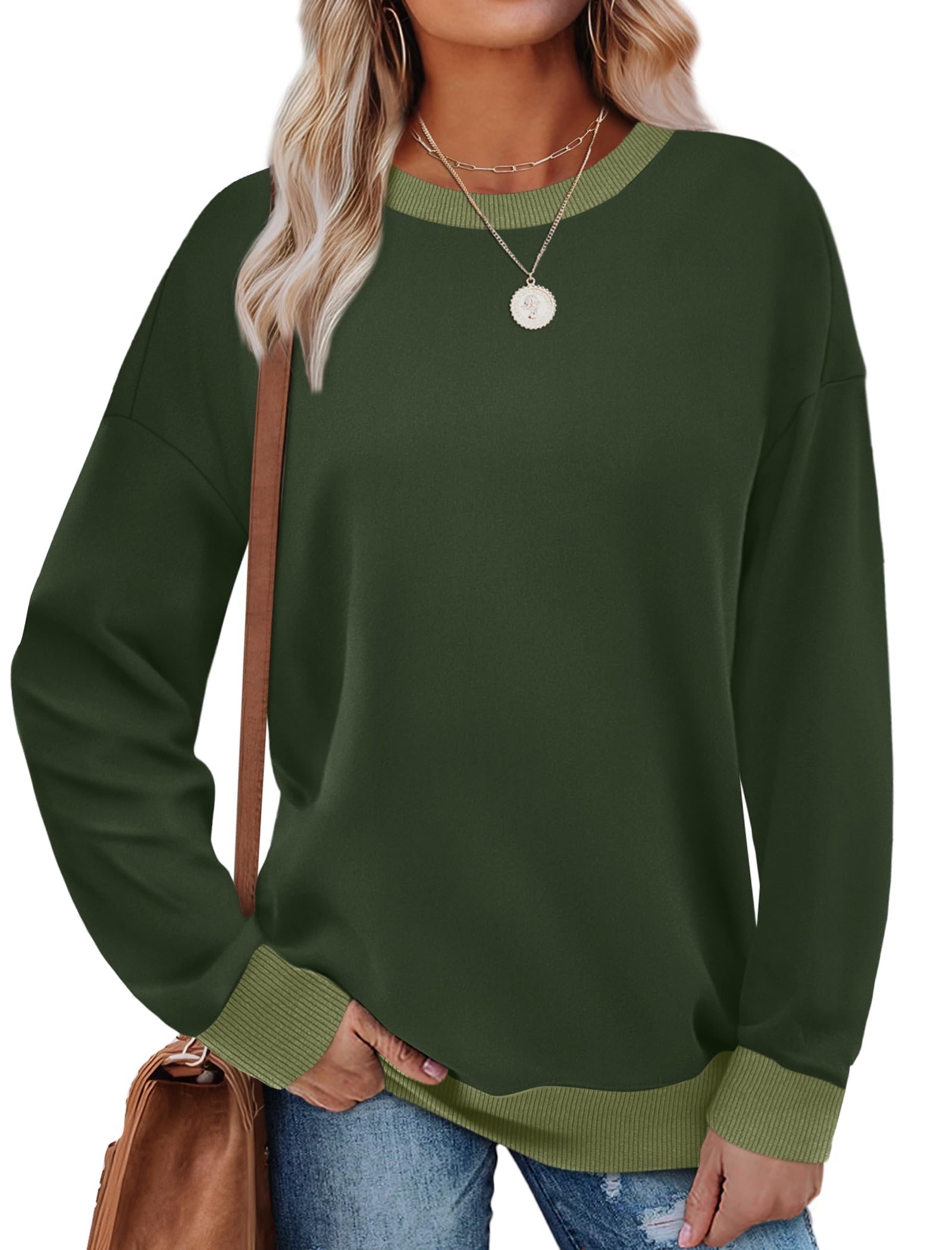 - ✦Unique Design: Color Block Ribbed Trim tops, crewneck sweatshirt loose fit, lightweight cozy sweaters, long sleeve comfy shirts. The contrasting trim makes it easy to show your unique personal fashion charm.