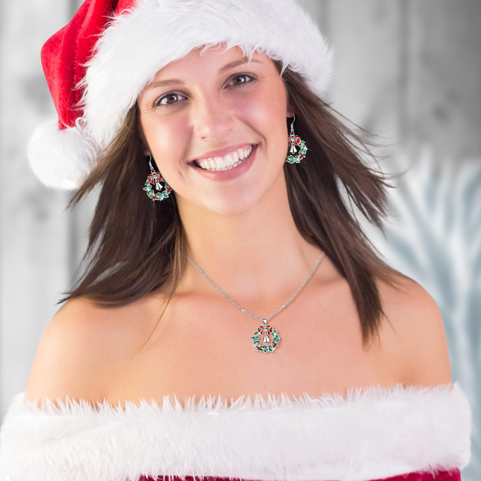- Christmas Theme: the Christmas wreath earrings feature classic Christmas themed colors, including red, green and silver, and the Christmas wreath pattern melds tradition and style, transcribing the holiday pleasure into something you can wear; From the necklace to the earrings, each piece brings the pleasure of Christmas closer