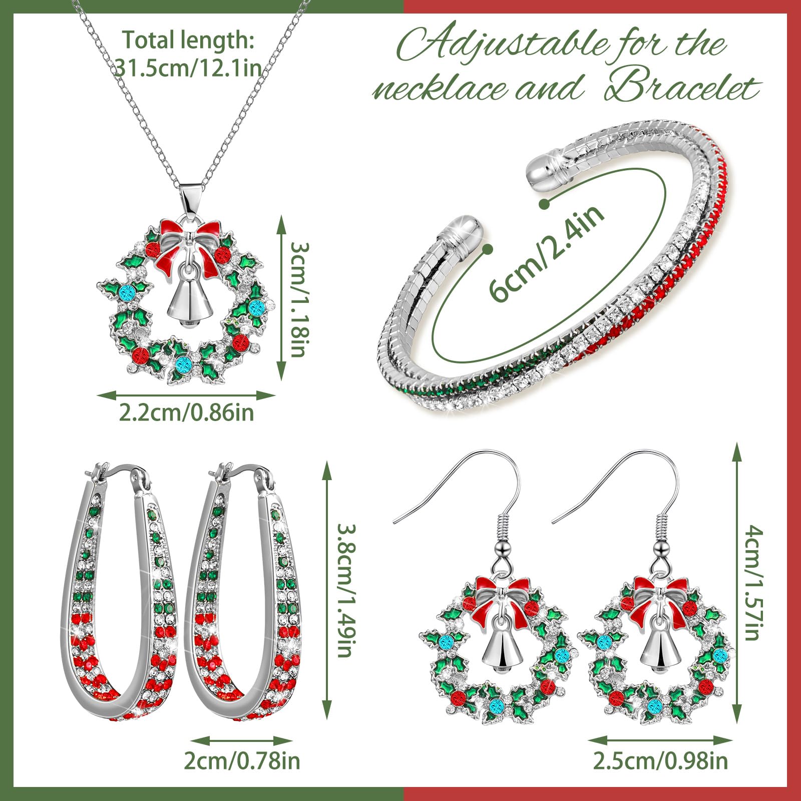 - Christmas Jewelry Set: you will receive 1 Christmas wreath necklace, 1 Christmas wreath earrings, 1 Christmas hoop earrings,1 Christmas bracelet, designed for family gathering, a Christmas dinner party, or a festive event, adding a festive touch