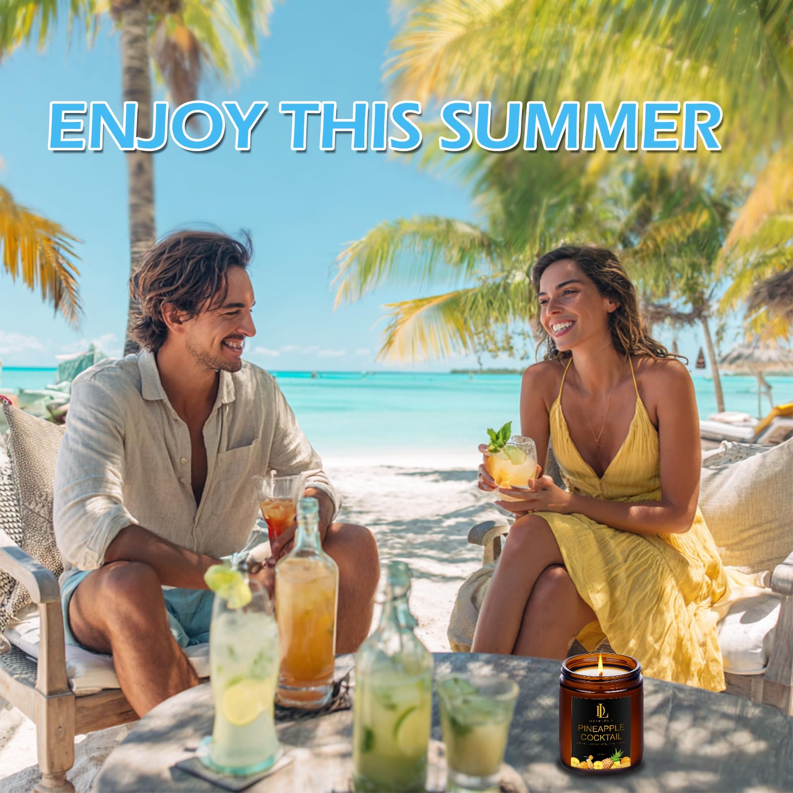 - Four Unique Scents: This 4 pack scented candle set includes four of the most popular scents: the romantic ocean scent of pink sands, the warm sweetness of coconut vanilla, the tropical vitality of pineapple cocktail, and the fresh holiday style of Bahamian breeze. Whether it is a relaxing, romantic or energetic moment, there is always one for you.