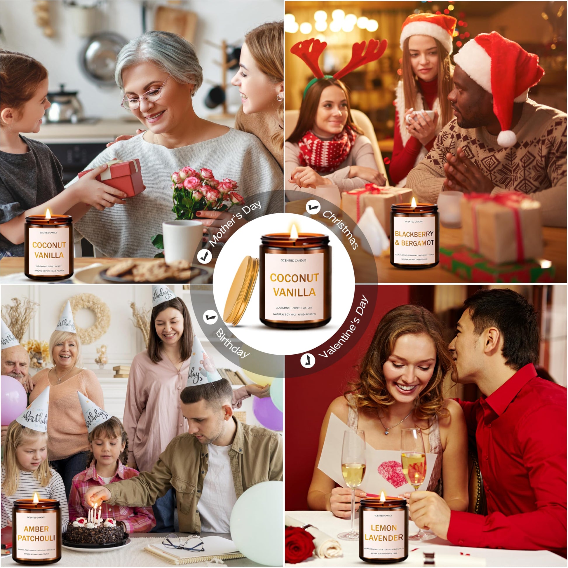 - Candles Gifts for Women: Our scented candles for women comes with a vintage giftable box, this aromatherapy candle gift set is suitable for valentines day gifts, mother's day gifts, birthday gifts, holiday gifts, and Christmas gifts. And this candle gift set will delight people of all ages.