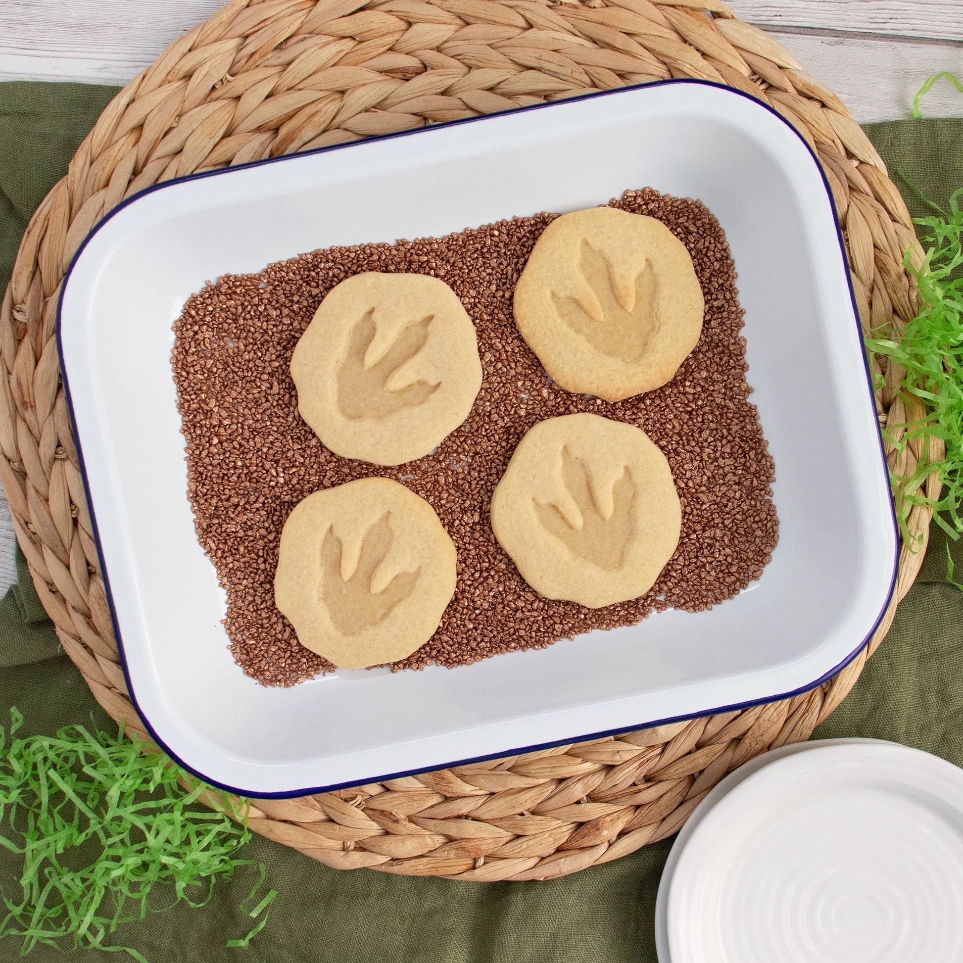 - T-Rex Footprint cookie cutter Size: 7.5 cm by 8 cm (2.9' by 3.1')