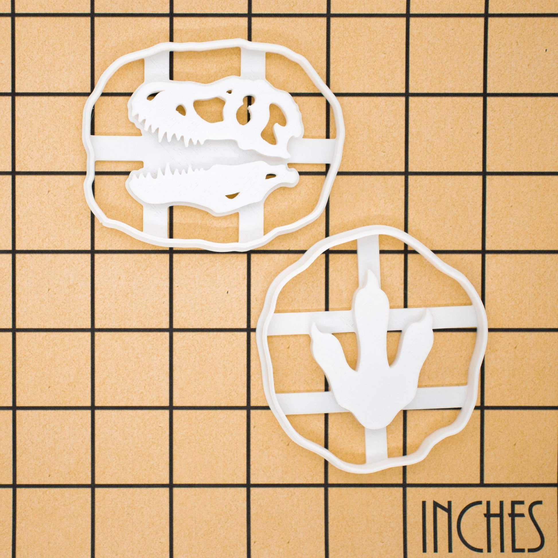 Set of 2 T-Rex Footprint and Skull Fossil cookie cutter, 2 pieces - Bakerlogy