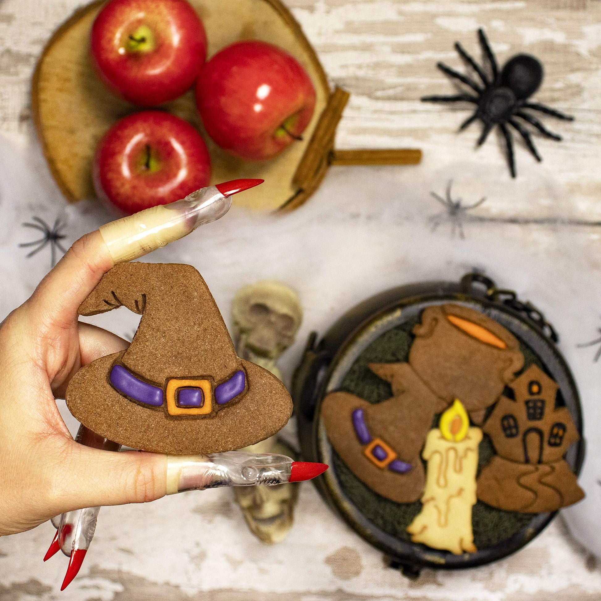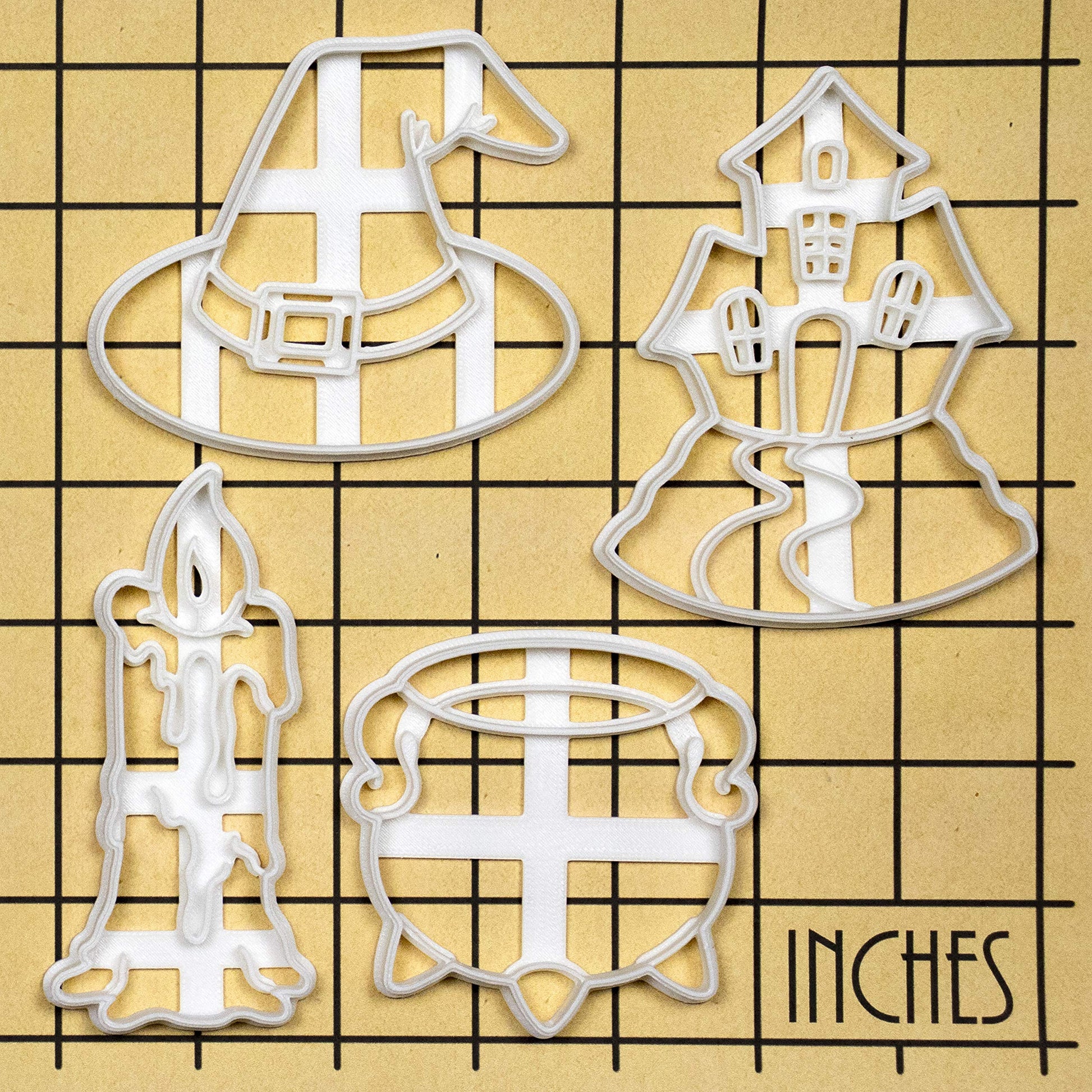 Set of 4 Witchcraft theme cookie cutters (Designs: Candle, Cauldron, Witch Hat, and Haunted House), 4 pieces - Bakerlogy