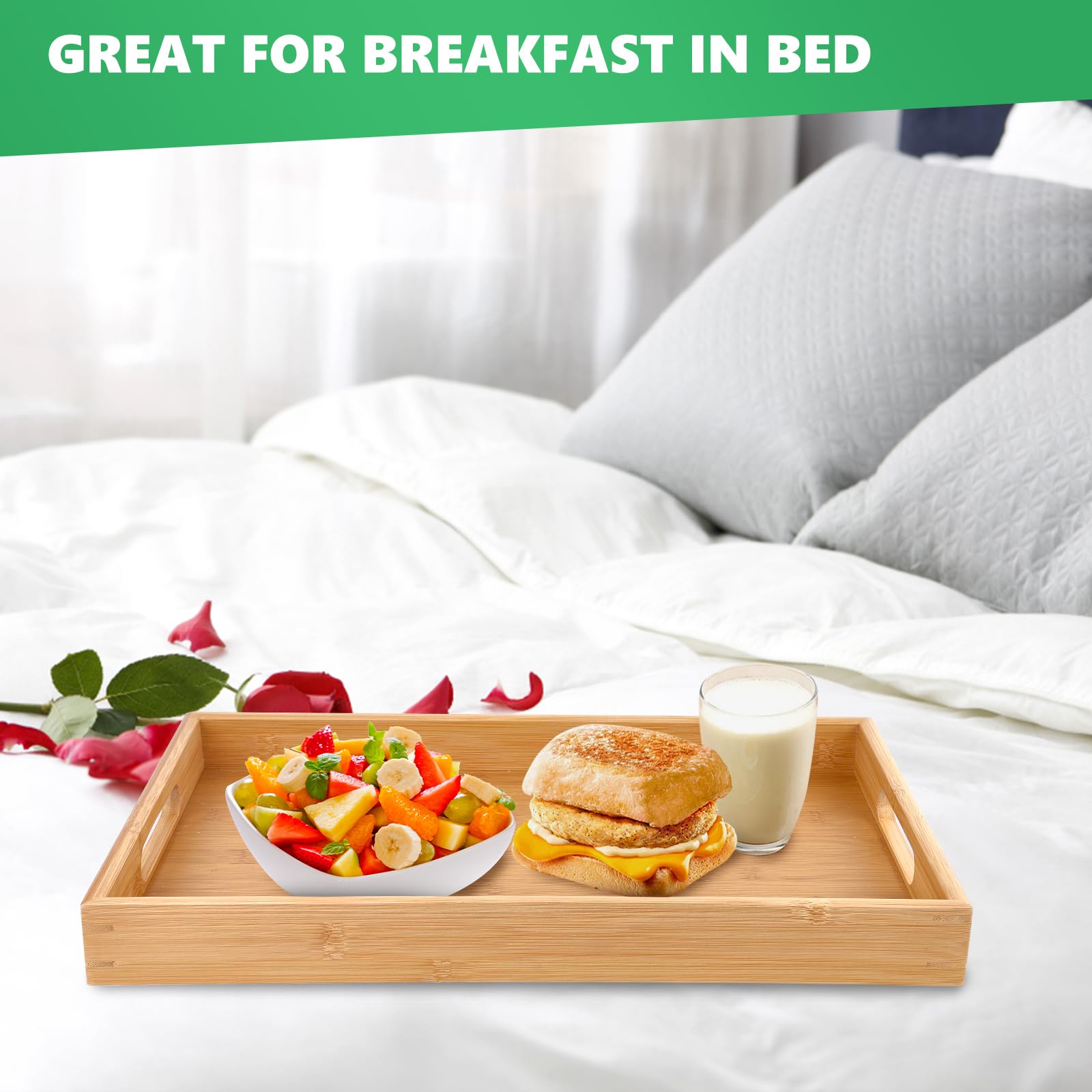 - 1. Our party tray is Crafted from quality and durable natural bamboo. Our serving trays with handles are stronger, sturdier and suitable for everyday use in the kitchen and beautifully decorate your coffee table.