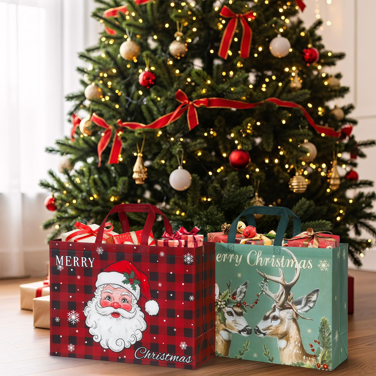 - ๐๐๐จ-๐๐ซ๐ข๐๐ง๐๐ฅ๐ฒ & ๐๐ญ๐ฎ๐ซ๐๐ฒ: Made from premium non-woven fabric, our Christmas bags offer an eco-conscious choice without sacrificing quality, featuring waterproof and moisture-resistant properties. Their reinforced handles and durable seams ensure longevity and comfortable carrying.