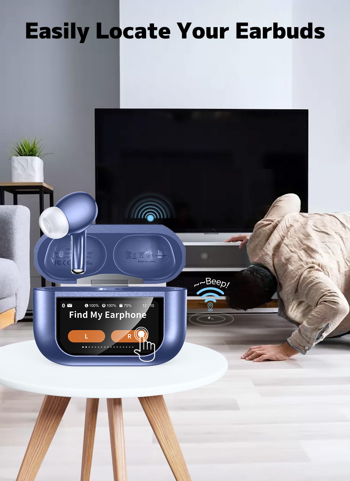 - Next-Gen Touchscreen Earbuds for Seamless Control: Wireless earbuds featuring a Smart Multifunctional Touch Screen Charging Case offer a revolutionary listening experience. Unlike traditional models, noise cancelling earbuds with this design let you control volume, skip tracks, manage calls, set alarms, and even locate your ear buds—all directly from the case, no phone needed. A smarter, more convenient way to stay in control
