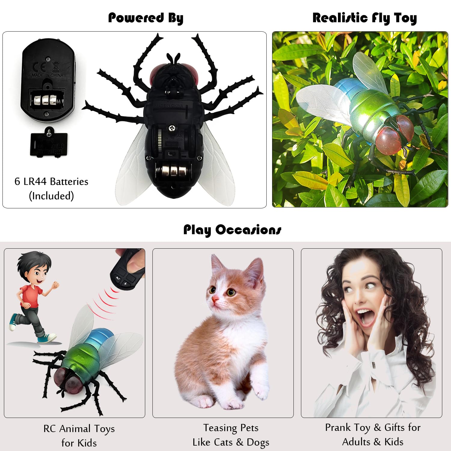 - 【Pets Teasing Toys】You can control the honey bee to move away or turn around, when your pets cats or dogs are going to catch it. Pets will struggle between liking and a little bit of fear, whether to give up or continue chasing. It is much fun to teasing your cats or dogs.