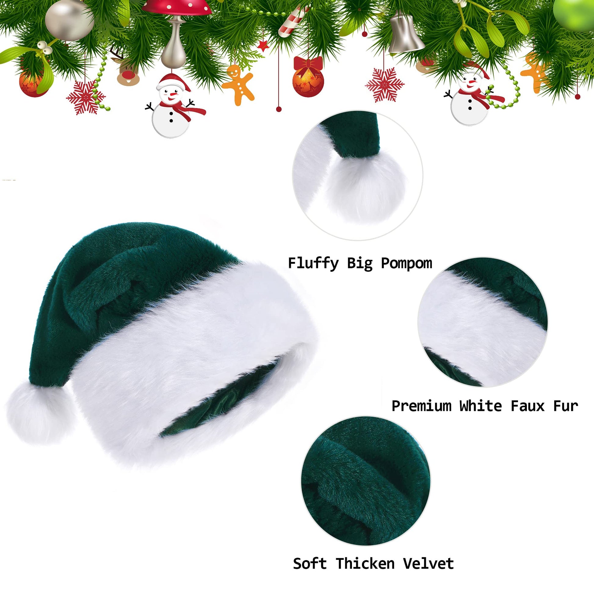 Tokforty Santa Hats, Green and White Santa Hats for Adults, Unisex Velvet Touch Comfort Christmas Hats for New Year Festive Party Christmas Supplies