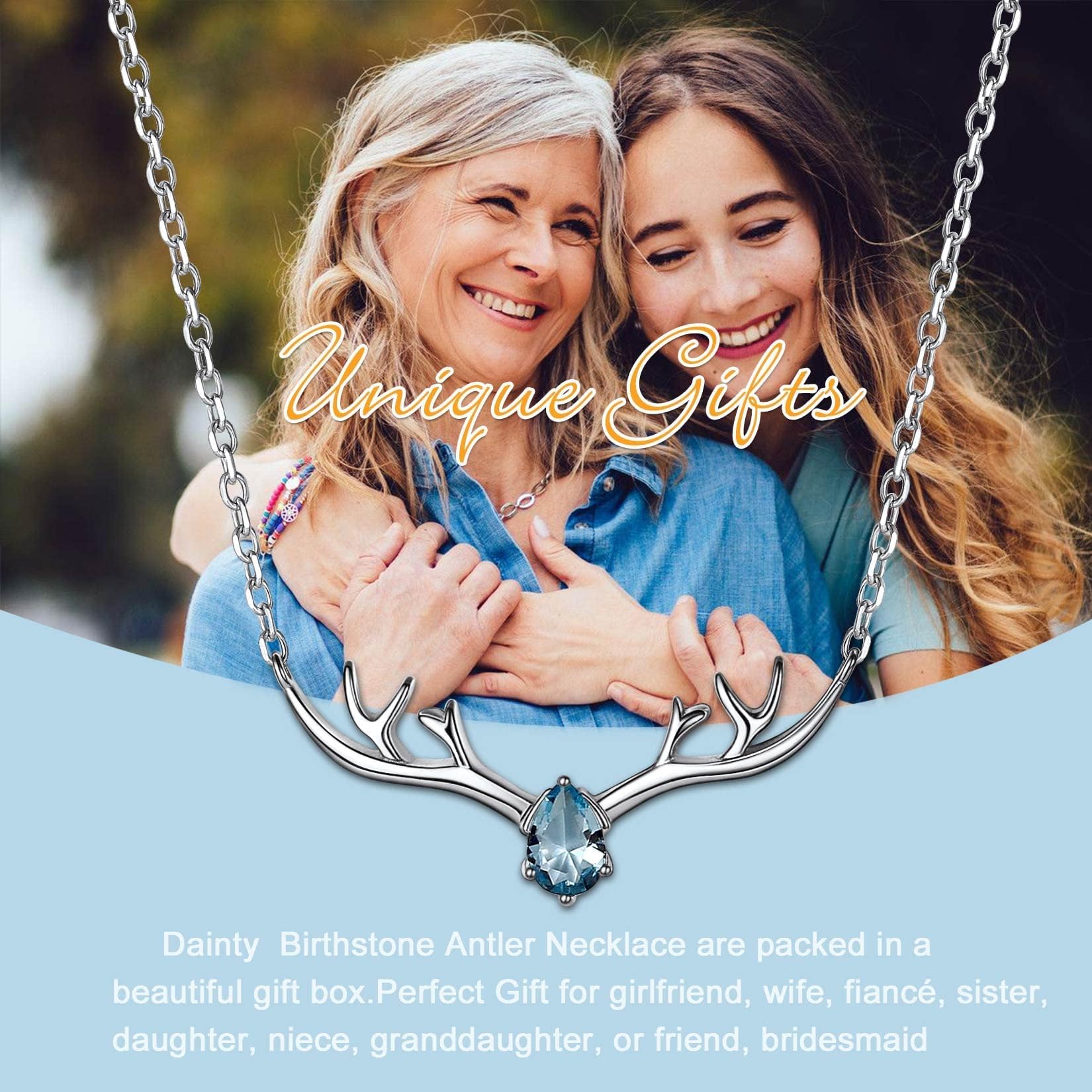 U7 Women Collar Necklace March Birthstone Aquamarine Jewelry Sterling Silver Lucky Reindeer Antler Necklace 16"-18"