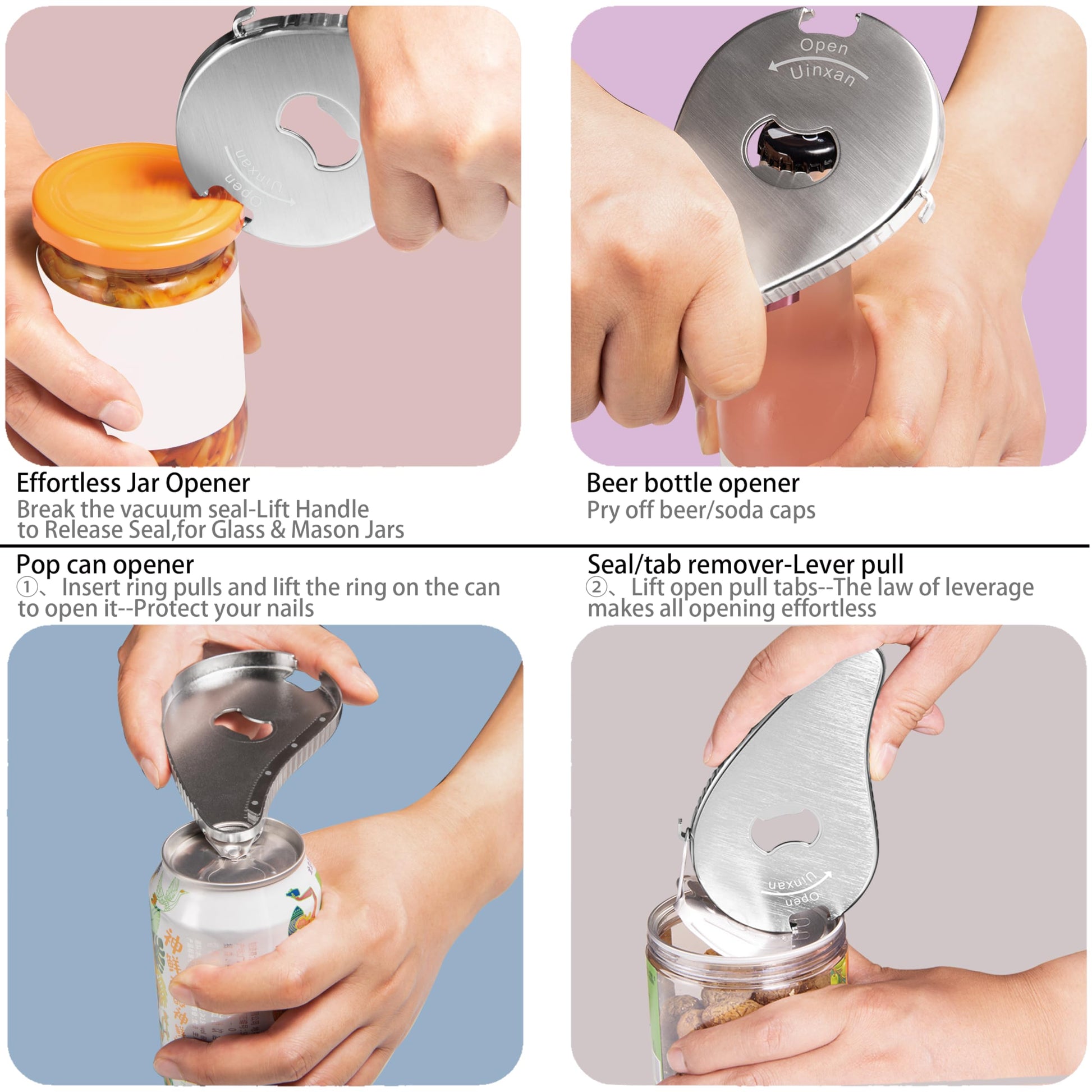 Uinxan Jar Bottle Can Opener for Weak Hands & Arthritis - Effortless Twist Off Lids (0.6"-2.7") & Pull Tab Seals | Premium 304 Stainless Steel, Patented | Portable Senior-Friendly Kitchen Gadget