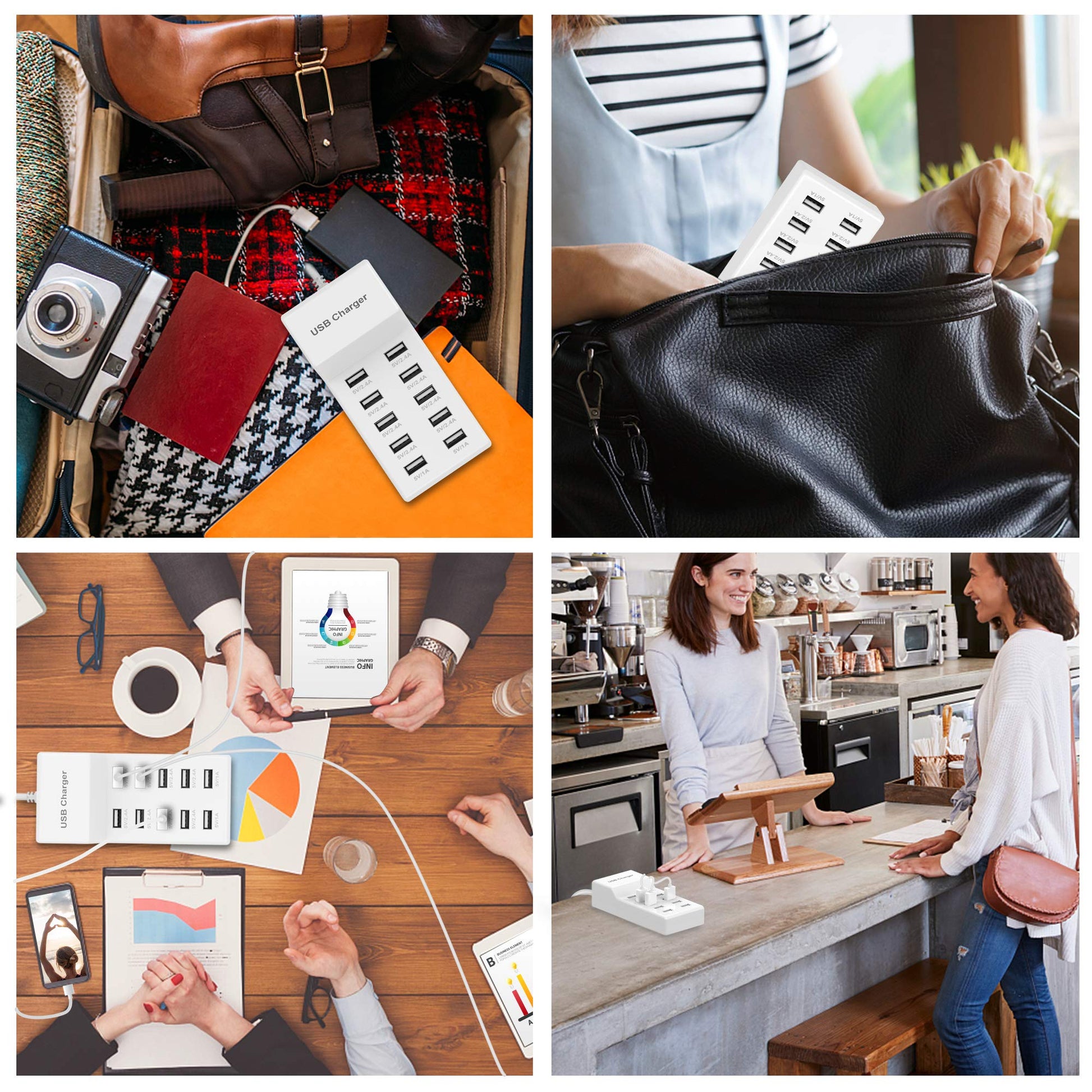 USB Charger Station Block with Rapid Charging Auto Detect Technology Safety Guaranteed 10-Port Family-Sized Smart USB Ports for Multiple Devices Smart Phone Tablet Headphones