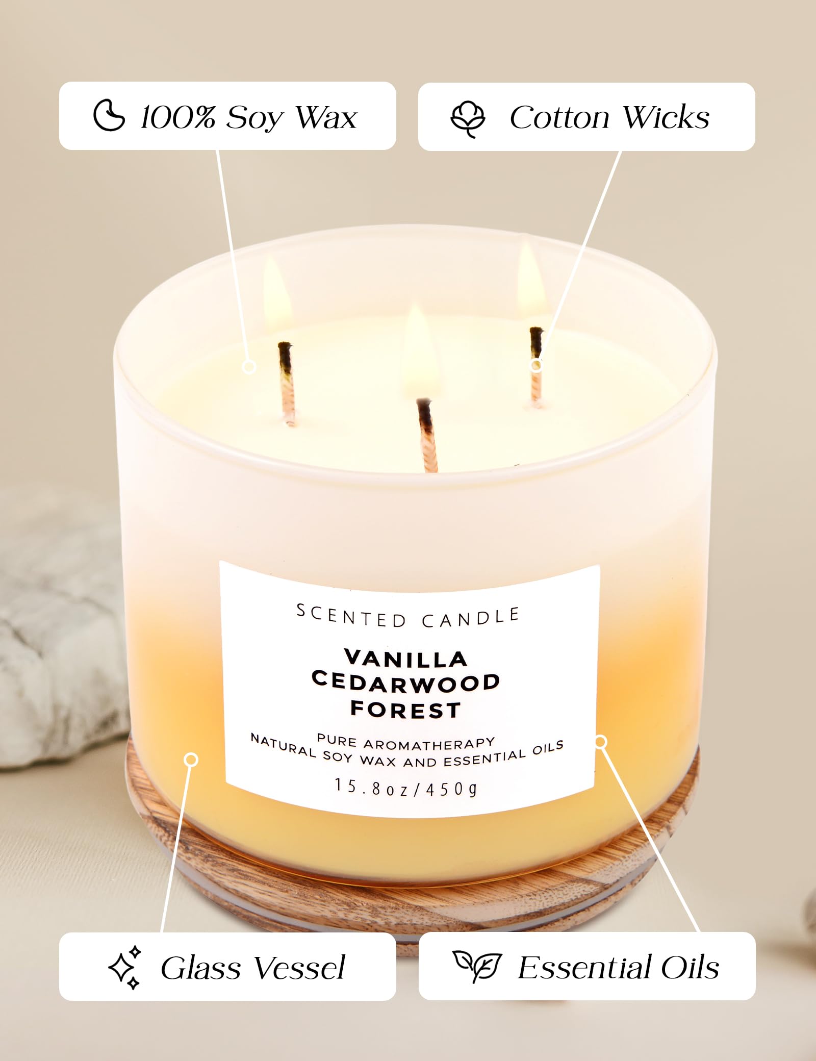 Vanilla Cedarwood Forest 3 Wick Scented Candle | Large Soy Candles for Stress Relief 15.8 oz | Relaxing Aromatherapy Candle for Men & Women | Fresh Cozy Scent Long Lasting Candles for Home Clean Burn