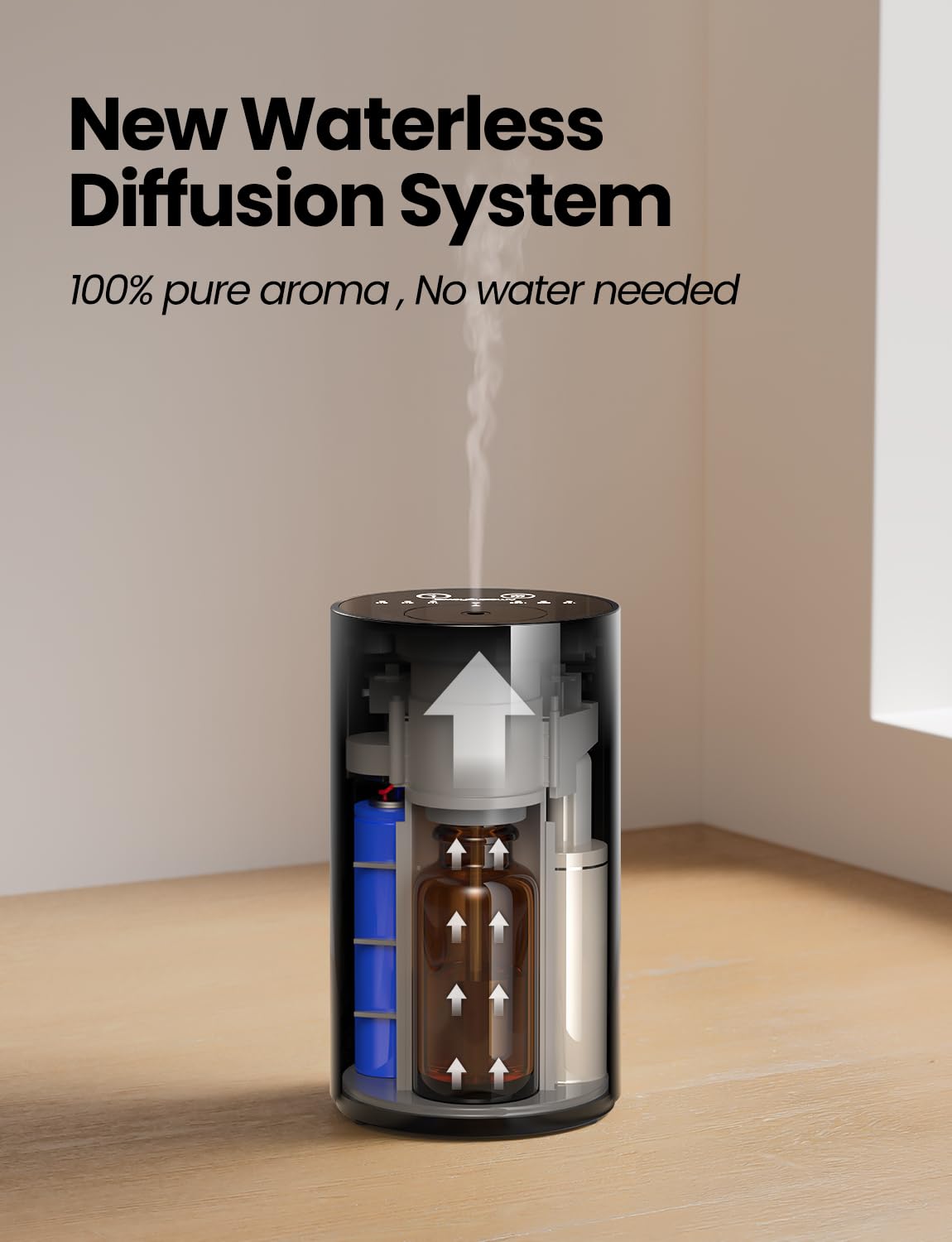 - 【Waterless Essential Oil Diffuser for Pure Aroma】Our advanced waterless diffuser technology transforms your favorite essential oils into a pure nano-mist without heat or water. Unlike traditional ultrasonic diffusers, it maintains the full strength and purity of each drop, offering a natural and convenient aroma experience. Perfect for those who want a scent diffuser that preserves essential oil integrity.
