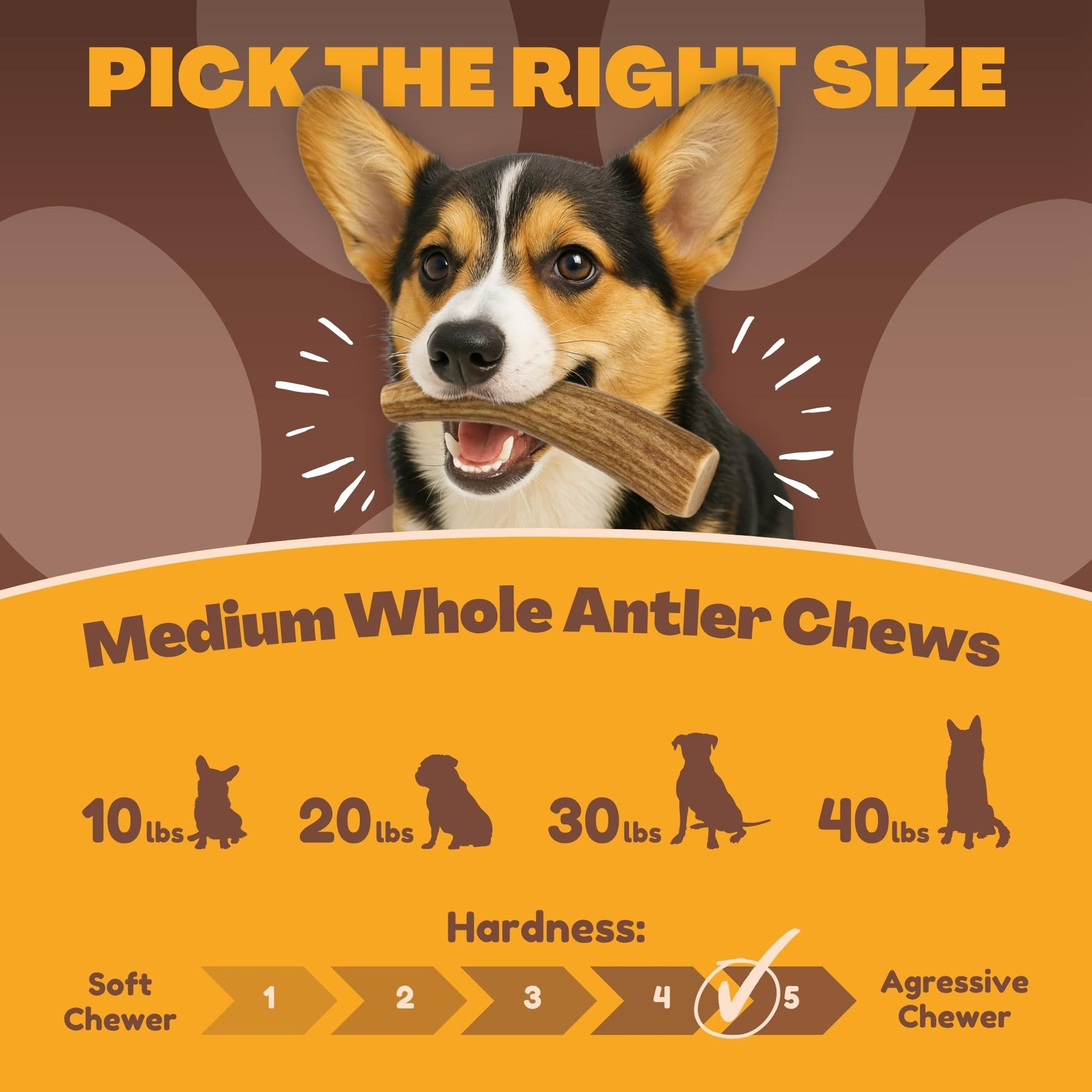 - IDEAL FOR MEDIUM SIZED DOGS. The Perfect Antler Chew Bulk Pack: Each pack contains 3 medium deer antlers, 5 to 6 inches long.- Our deer antler dog chews are proudly crafted in Texas using naturally shed, hand-selected wild deer antlers.