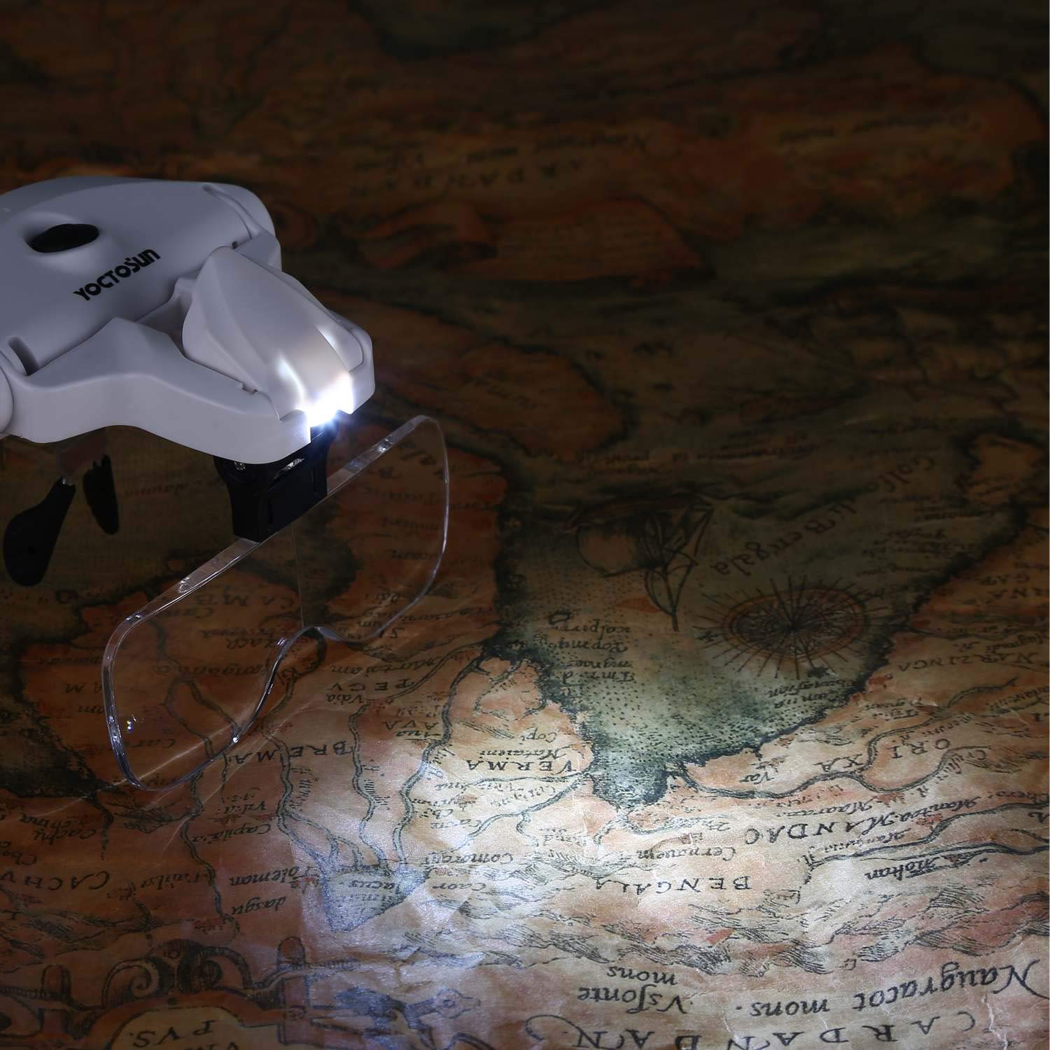 YOCTOSUN LED Head Magnifier, Rechargeable Hands Free Headband Magnifying Glasses with 2 Led, Professional Jeweler's Loupe Light Bracket and Headband are Interchangeable