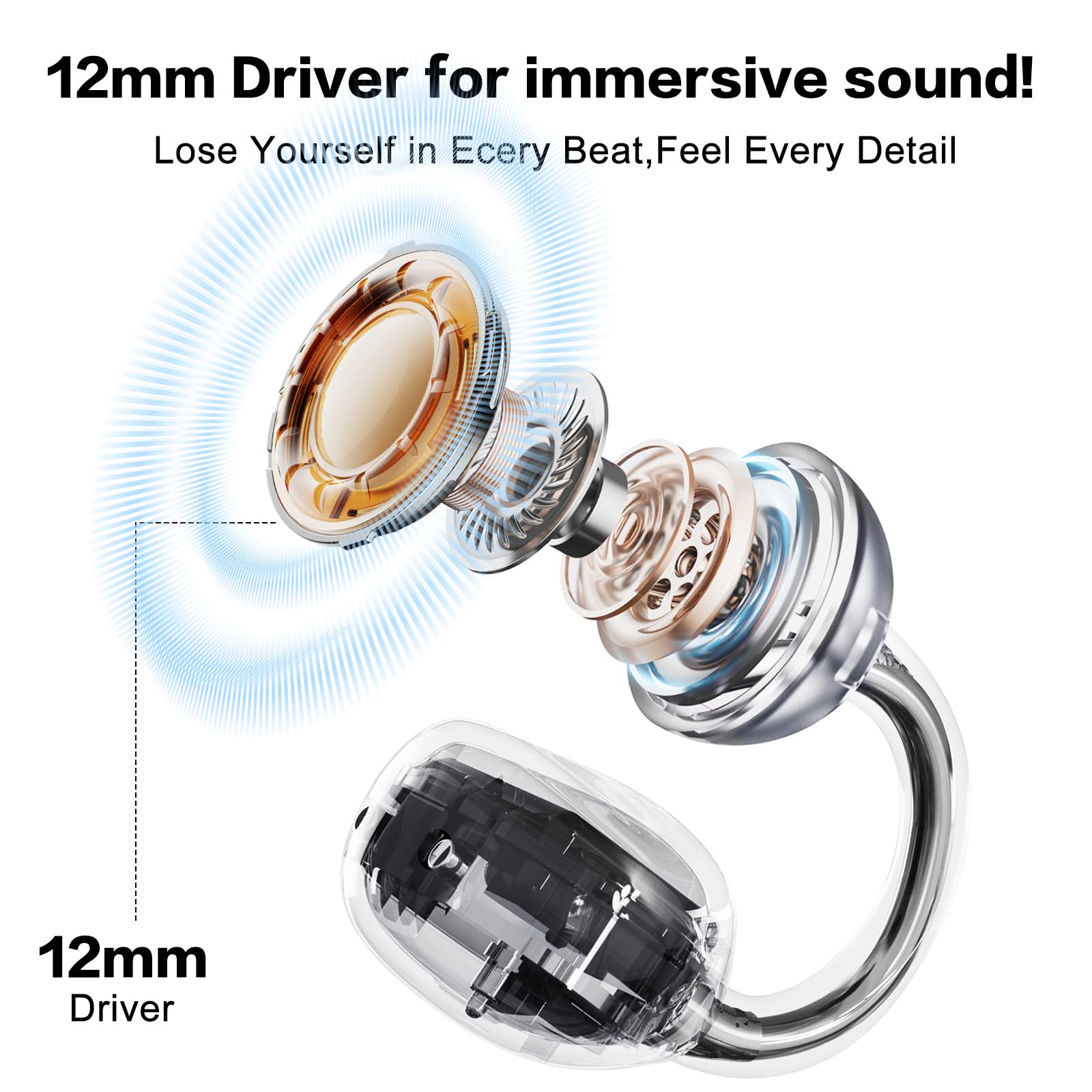 - Open Ear Headphones : Zihnic upgraded C-shaped bridge design headphones without any pressure. Our clip-on earbuds are expertly engineered to fit every ear shape snugly. Weighing a mere 4.7g, they offer a featherlight, painless wear, perfect for all-day use.