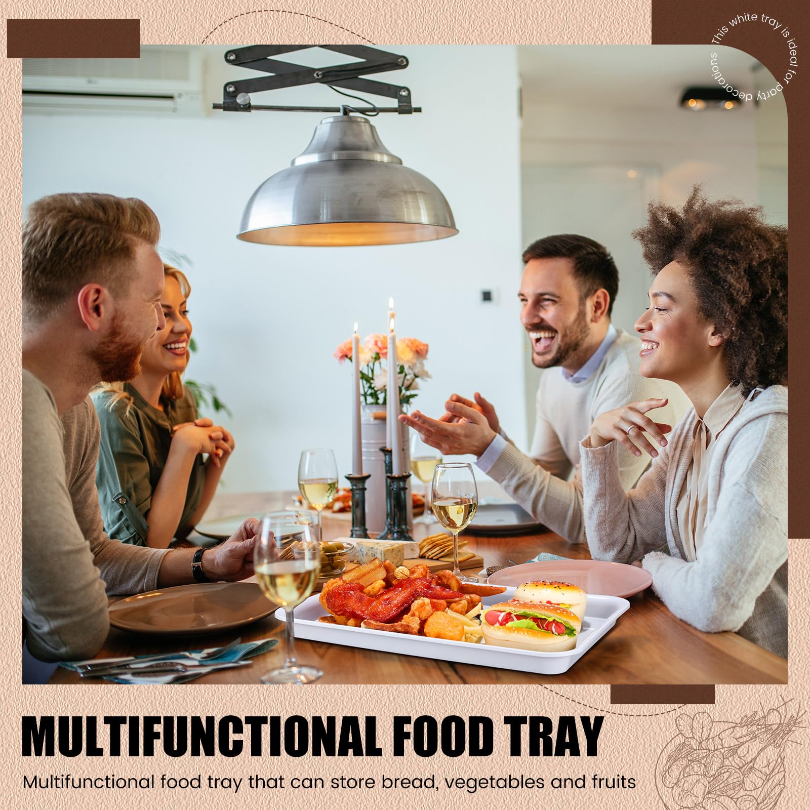 • Ideal for Entertainment: with its classic white design, this white tray is ideal for party decorations; You can fill your dining table or snack bar with dishes, snacks, cookies, fruit, desserts and other delicious treats for your guests to enjoy