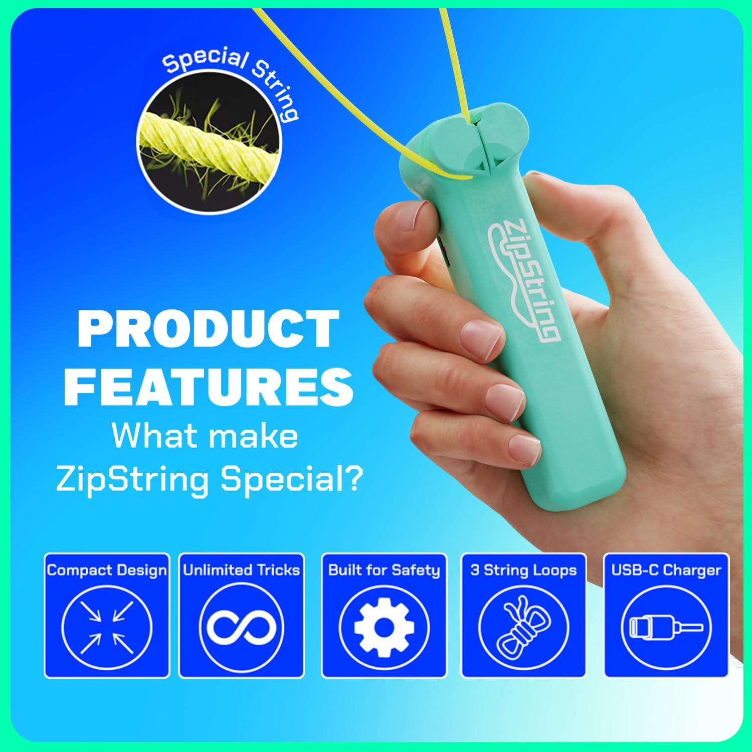 - VERSATILE AND FUN: It's like having a whole box of fun packed into one neat package. Whether you're into playful lasso games, mind-boggling finger tricks that will leave your friends shocked, or creating enchanting magic loops that will mesmerize everyone around you, ZipString has got your back. Kids, teens, adults—you name it, everyone can join in on the fun!